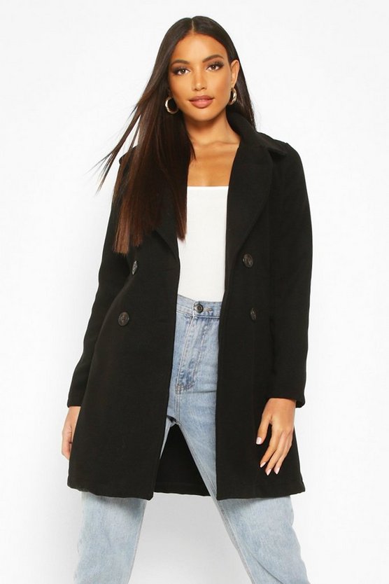 ブーフー BOOHOO 黒色 ブラック 【 BOOHOO DOUBLE BREASTED COLLARED WOOL LOOK COAT BLACK 】